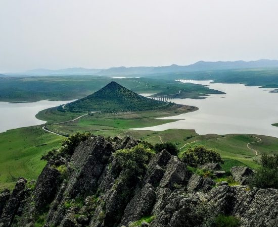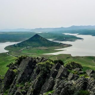 El cerro Masatrigo está declarado recientemente monumento natural de Extremadura, y tras quedarse en medio de las aguas del embalse de la Serena la carretera que lo bordea es la glorieta más grande de toda Europa, pero todas estas curiosidades conviene disfrutarlas en el lugar donde se ubica esta maravilla. Proponemos dos rutas en este entorno, en la primera subiremos caracoleando hasta lo más alto del Cerro Masatrigo, tras la bajada al punto donde nos deja el bus, iremos hasta el punto de inicio de la segunda ruta, y en esta segunda ruta ascenderemos al Mirador de Galizuela, el mejor balcón natural para fotografiar el Cerro Masatrigo y todo el embalse de la Serena.